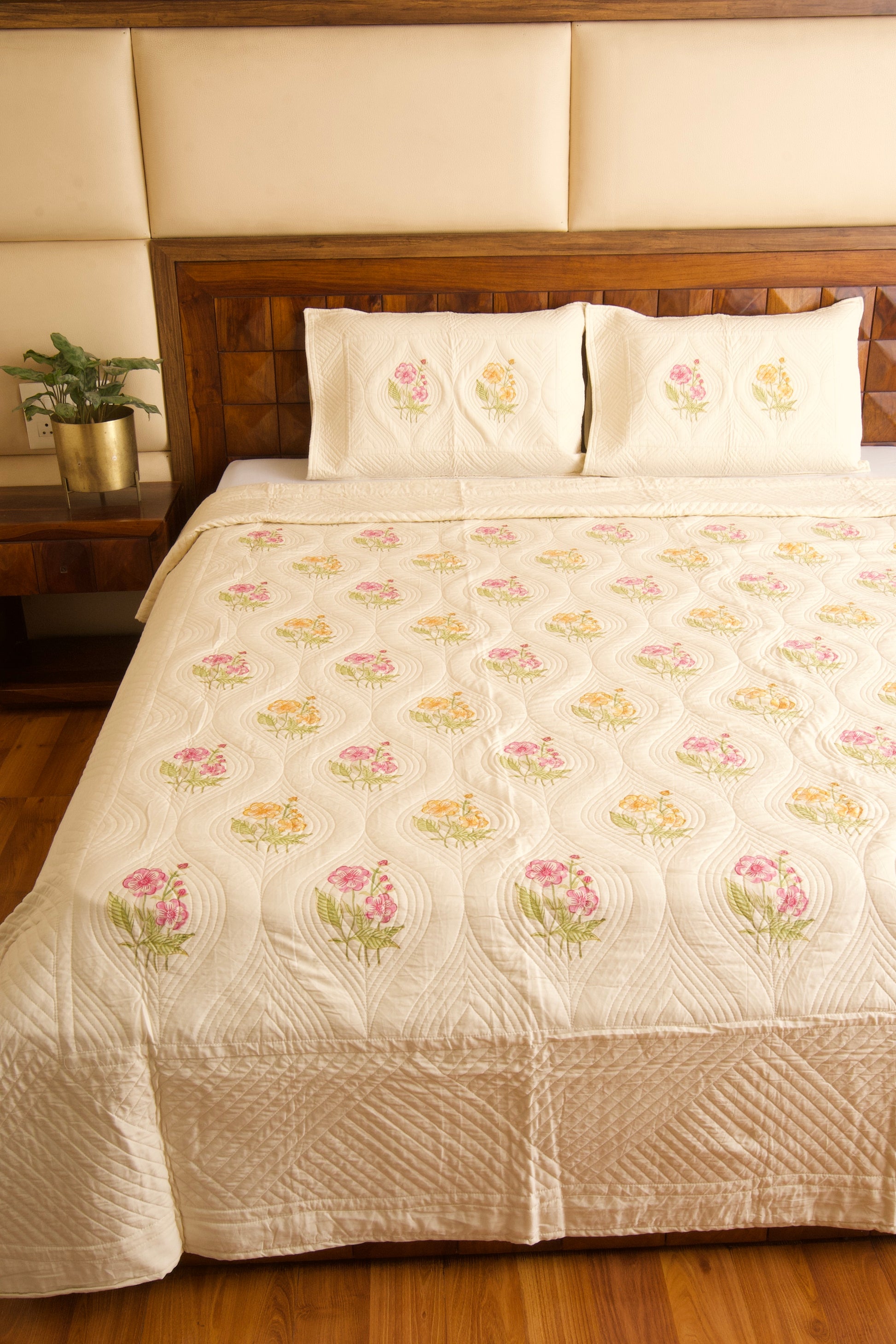 Elevate your space with our artisanal hand-block printed bedcovers. Crafted from premium cotton and quilted for supreme comfort, each piece is a testament to timeless elegance and cozy sophistication.