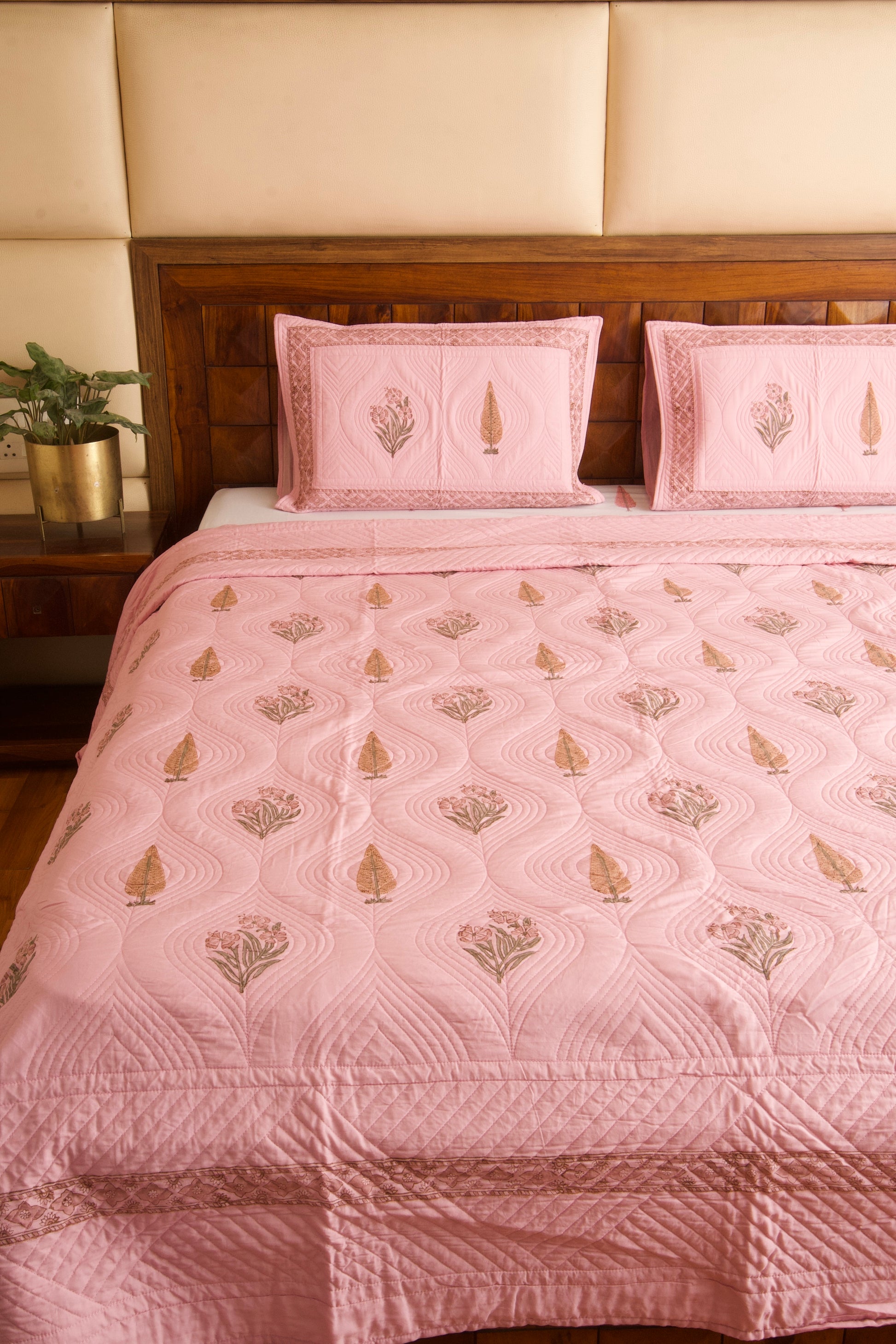 Elevate your space with our artisanal hand-block printed bedcovers. Crafted from premium cotton and quilted for supreme comfort, each piece is a testament to timeless elegance and cozy sophistication.