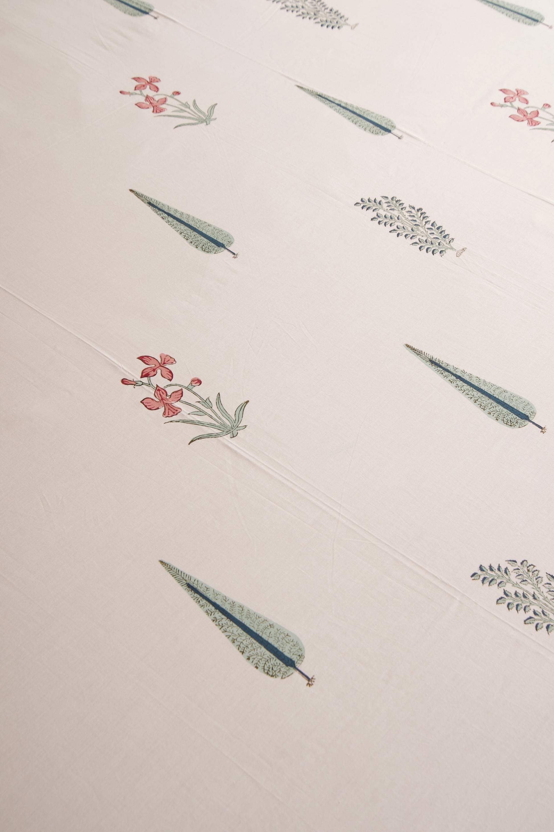 Experience ultimate comfort and elegance with our organic percale pure cotton 300 TC bedsheet paired with a matching exquisitely soft and cozy hand-quilted, block-printed mulmul cotton quilt.