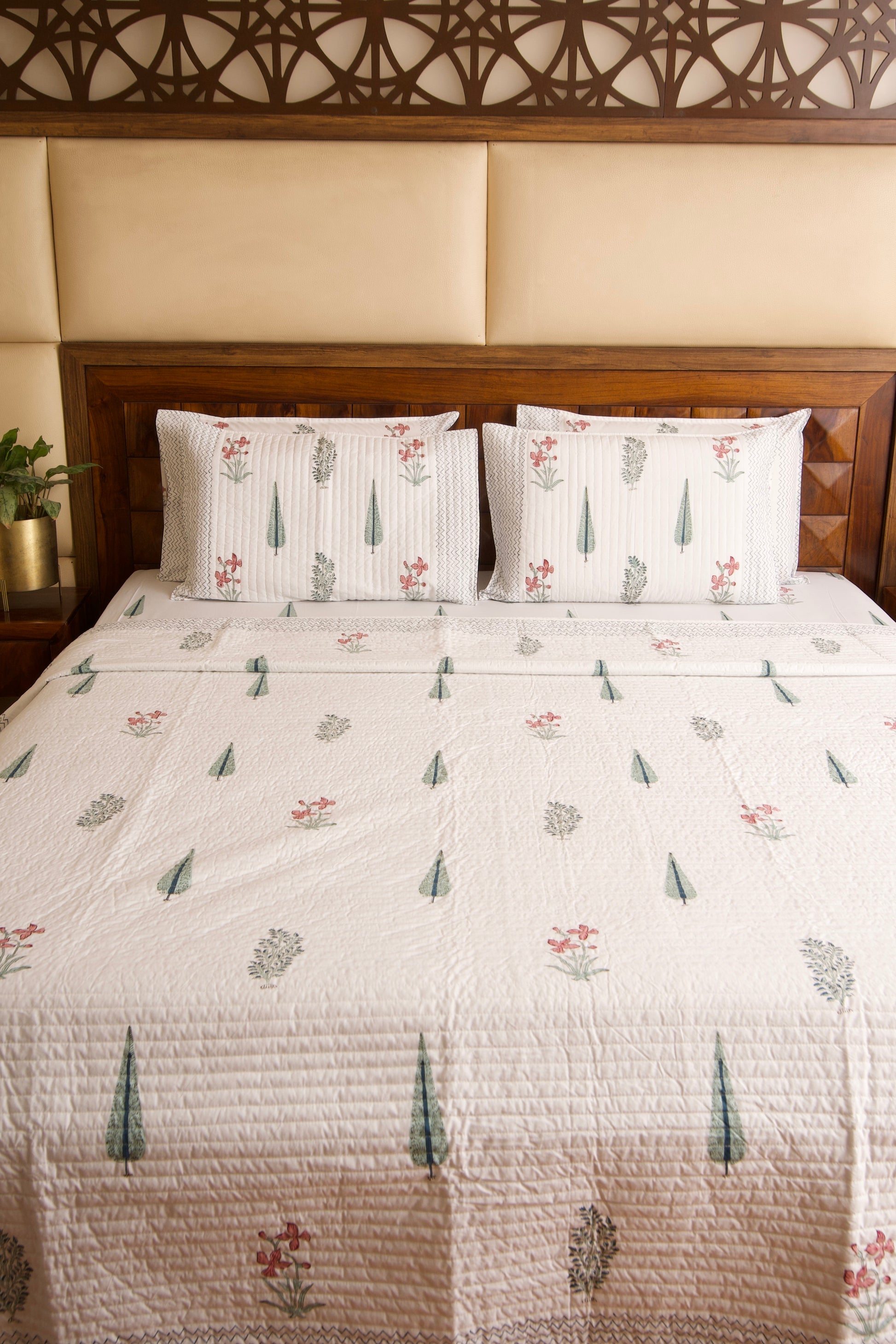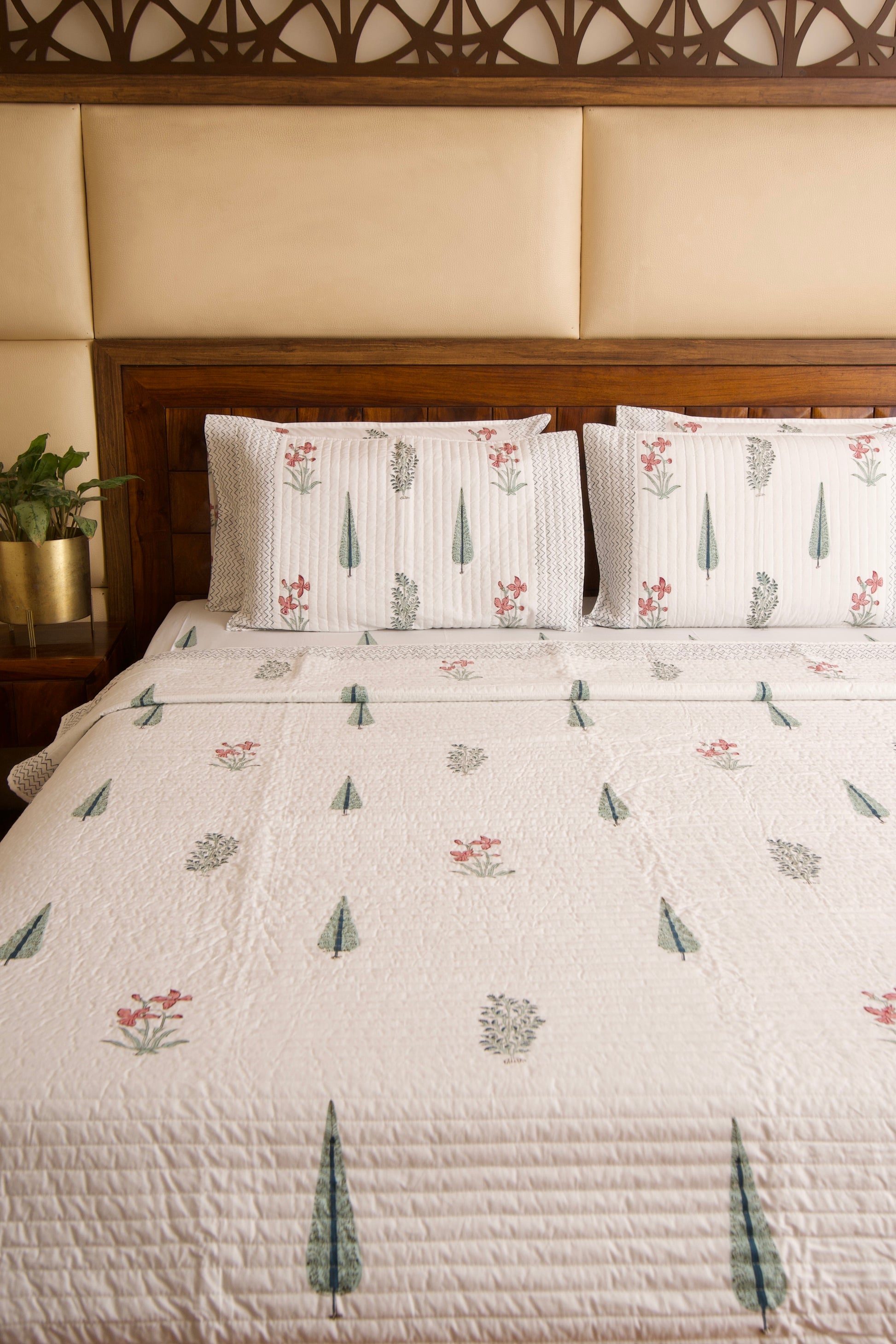 Elevate your space with our artisanal hand-block printed bedcovers. Crafted from premium cotton and quilted for supreme comfort, each piece is a testament to timeless elegance and cozy sophistication.
