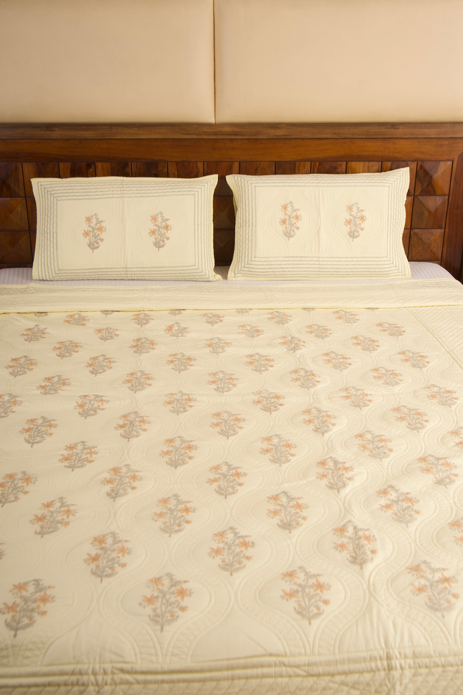 Elevate your space with our artisanal hand-block printed bedcovers. Crafted from premium cotton and quilted for supreme comfort, each piece is a testament to timeless elegance and cozy sophistication.