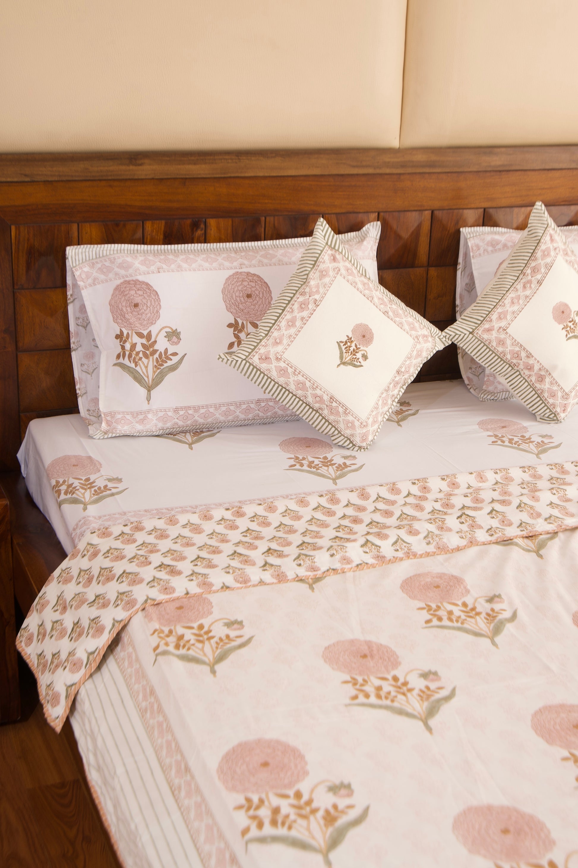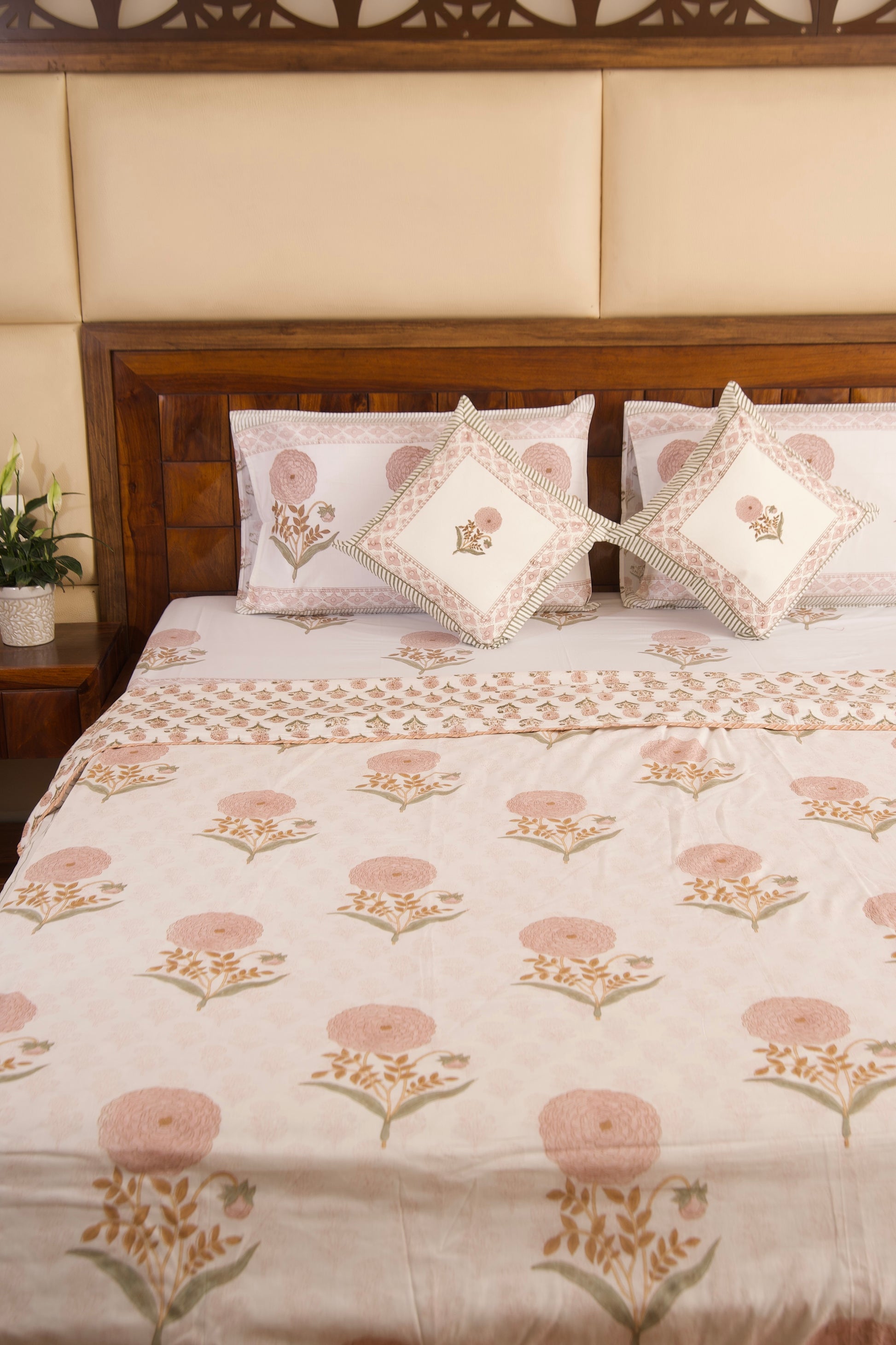 Experience the charm of hand block craftsmanship with our bedsheets collection, where every pattern tells a story, and every night becomes an embrace of elegance and comfort.