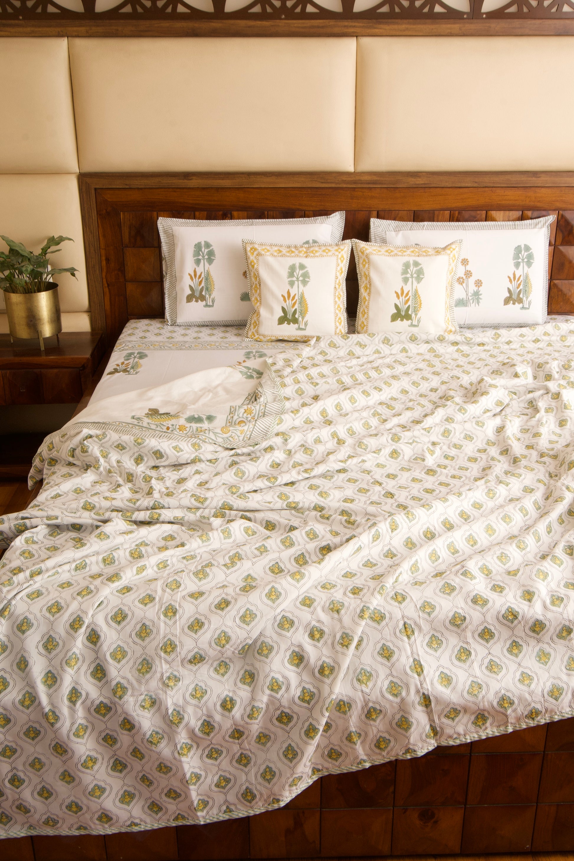 Say goodbye to sweaty nights and hello to cool, restful sleep with our organic mulmul cotton hand block printed dohar AC blanket! Paired with our Percale cotton Bedsheet